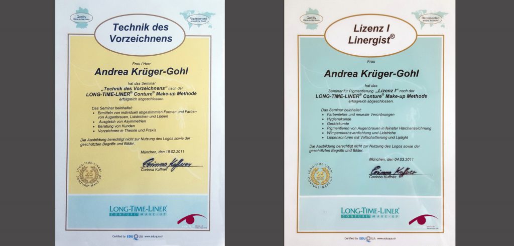 Meine Ausbildung zur Permanent Make-up Artist absolvierte ich im März 2011 bei Long-Time-Liner.