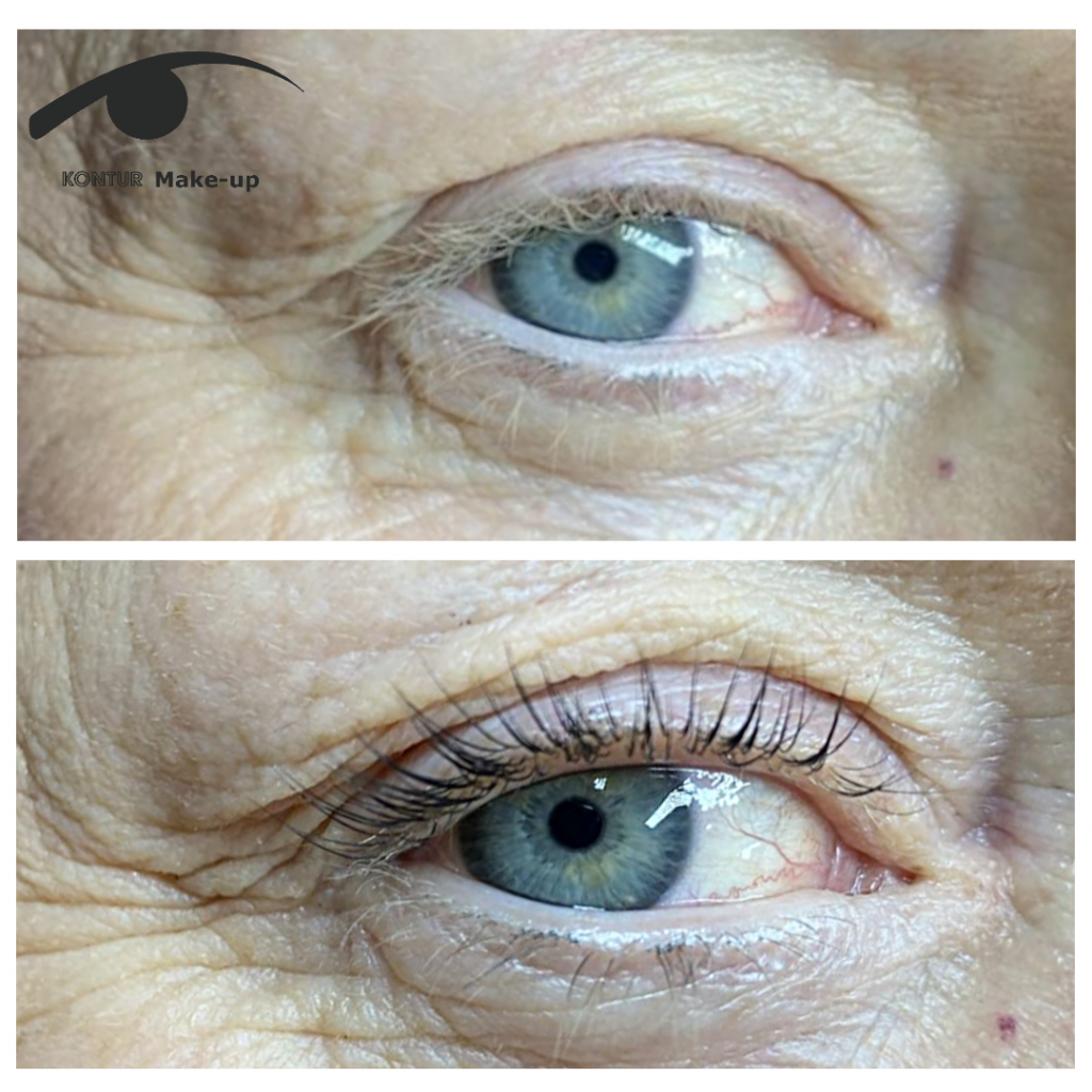 Die eigenen Wimpern werden sanft direkt am Wimpernkranz angehoben und mit verschiedenen Volumenpräparaten behandelt.